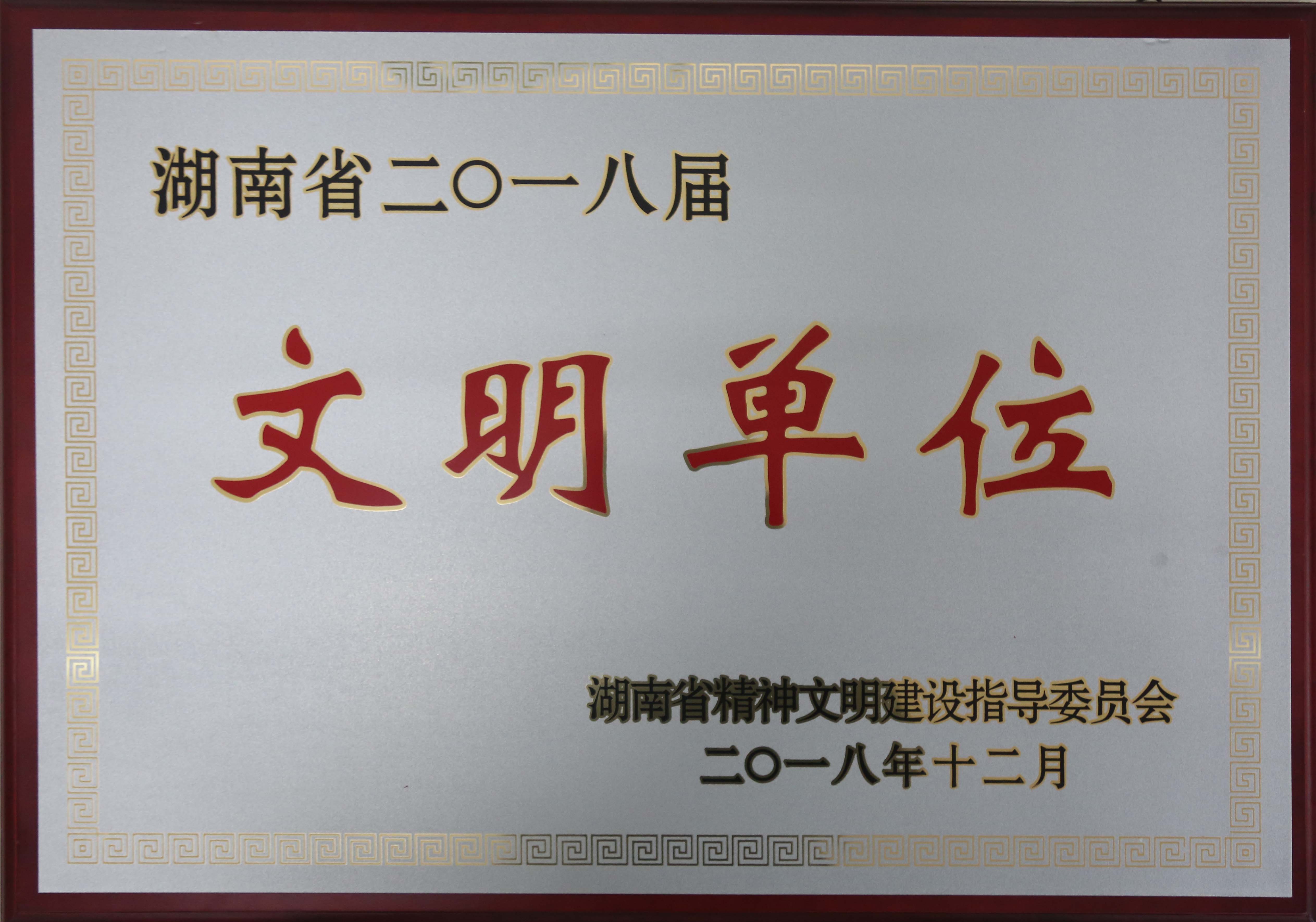 2018年12月被湖南省精神文明建設(shè)指導(dǎo)委員會評為“湖南省二〇一八屆文明單位”